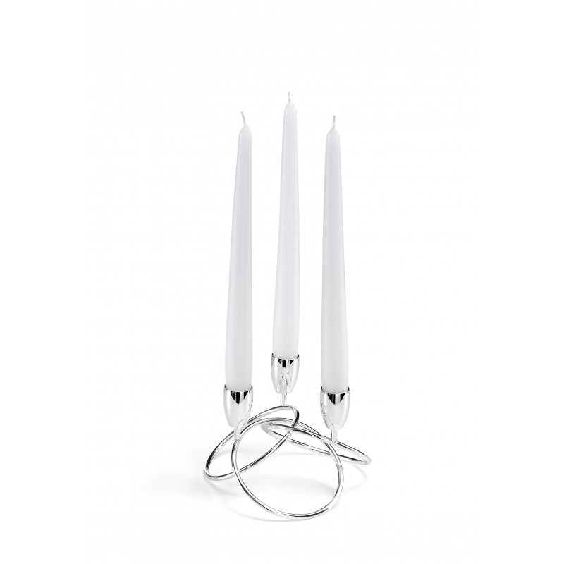 Candelabro tre fiamme in argento completo di candele  cm. 14,9 x 14,9 x 10,5 H
