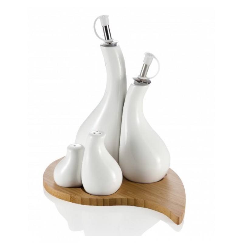 MENAGE-GOCCIA-SET-4-PEZZI-IN-PORCELLANA-BIANCA-CON-SUPPORTO-IN-BAMBOO